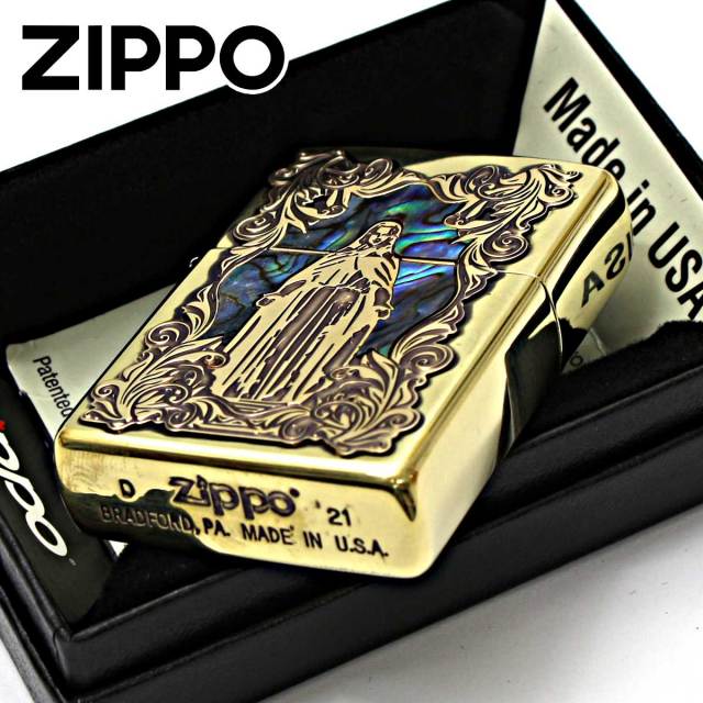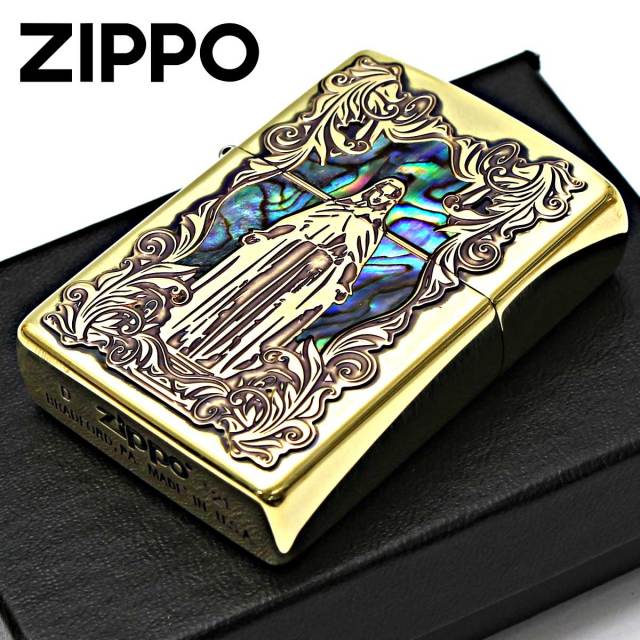 「アラベスクマリア」シリーズにシェル(貝貼り)バージョンが登場しました。マリア様の回りを貝貼りにすることでゴージャス感を演出!存在感抜群のZippoです。御守り代わりももGood。