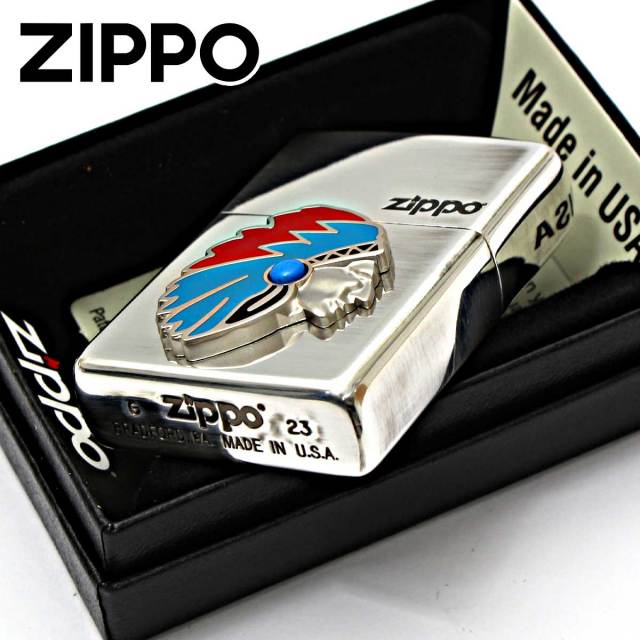 アメリカの先住民族のネイティブ・アメリカンメタルが貼り付けられたZIPPO。天然石のターコイズが埋め込まれております。天然石のターコイズは、人と人との絆や友情を深めてくれる石。贈り物としても最適です。いぶし仕上げには、個体差がございます。予めご了承下さい。