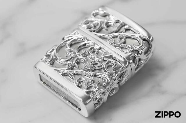 ZIPPOライターすべてを装飾したメタルでフルカバーした迫力あるシリーズ。その重厚感は、これまでのZIPPOライターにない迫力と存在感を放ちます。重さは約120g、ズッシリとした重さですが、程よく心地よい感覚です。男性が持つとカッコイイデザイン!