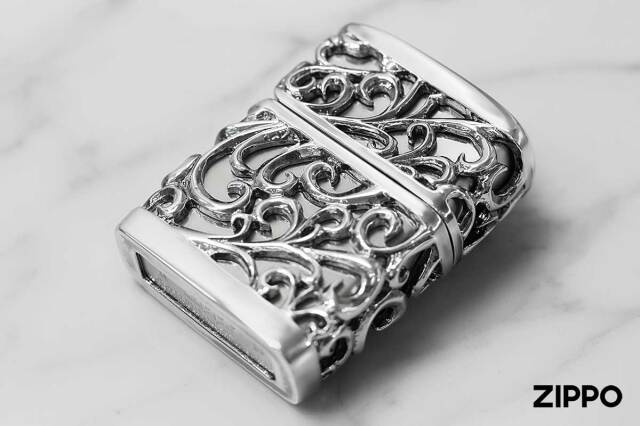 ZIPPOライターすべてを装飾したメタルでフルカバーした迫力あるシリーズ。その重厚感は、これまでのZIPPOライターにない迫力と存在感を放ちます。重さは約120g、ズッシリとした重さですが、程よく心地よい感覚です。男性が持つとカッコイイデザイン!