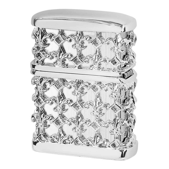 ZIPPOライターすべてを装飾したメタルでフルカバーした迫力あるシリーズ。その重厚感は、これまでのZIPPOライターにない迫力と存在感を放ちます。重さは約120g、ズッシリとした重さですが、程よく心地よい感覚です。男性が持つとカッコイイデザイン!