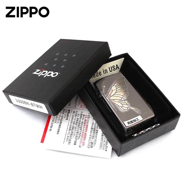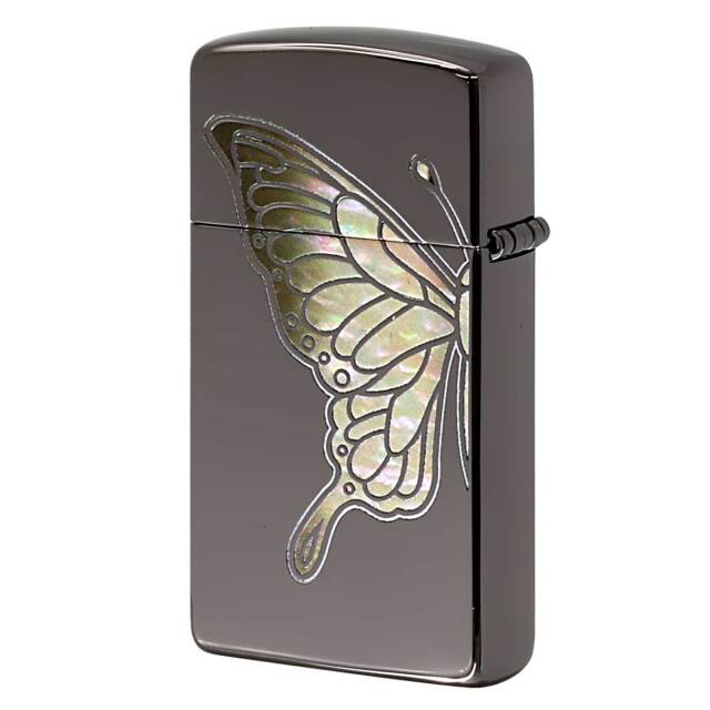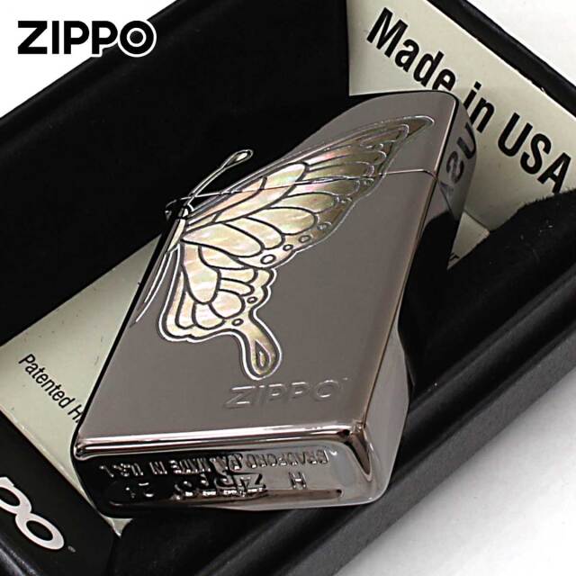 蝶々をシェル風のフルカラープリントでデザインした、華やかなZIPPOです。幼虫・さなぎから美しく変化する蝶は、「美」「成長」「変身」「復活」の象徴とされています。また、ブラックニッケルがベースなので蝶々が、綺羅びやかに映えます。同じシリーズを組み合わせてペアで持つことも出来ます。女性へのプレゼントにGood!