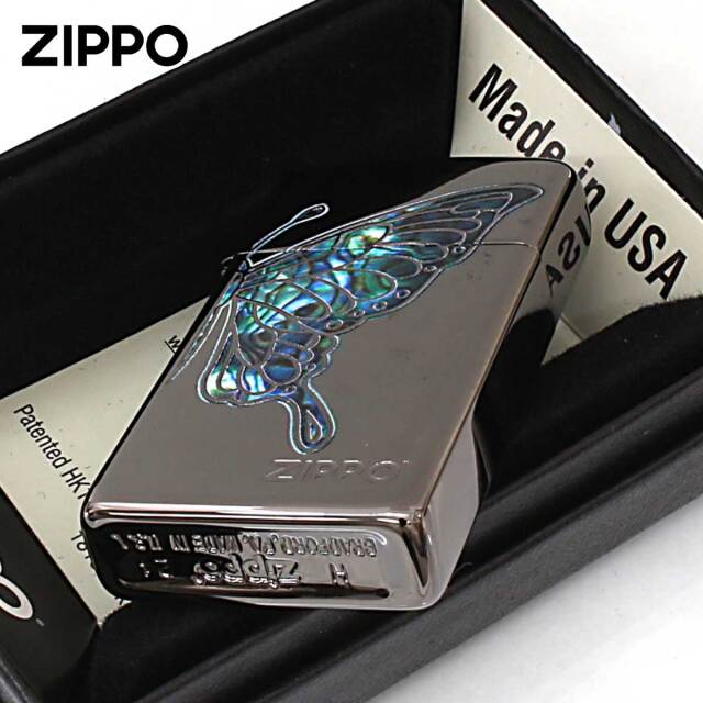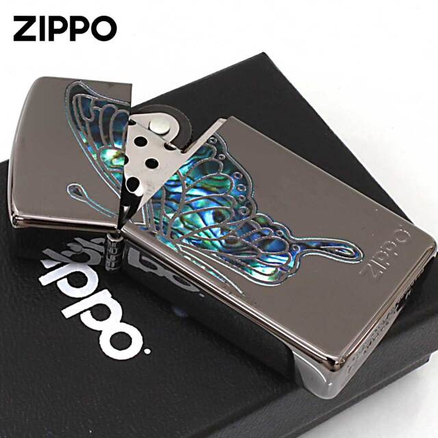 蝶々をシェル風のフルカラープリントでデザインした、華やかなZIPPOです。幼虫・さなぎから美しく変化する蝶は、「美」「成長」「変身」「復活」の象徴とされています。また、ブラックニッケルがベースなので蝶々が、綺羅びやかに映えます。同じシリーズを組み合わせてペアで持つことも出来ます。女性へのプレゼントにGood!