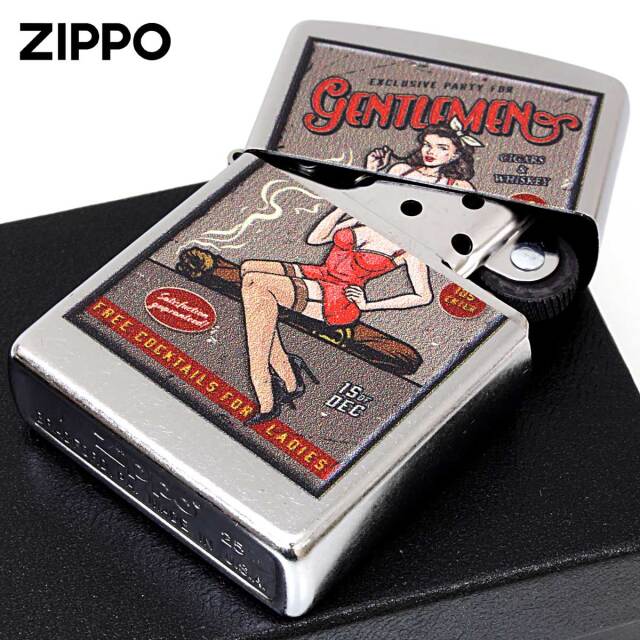 オールドポスター風のビンテージデザインがプリントされております。レトロ感満載のZIPPOです。ベースが、ストリートクロームなので指紋汚れも目立ちません。普段使いにオススメ!