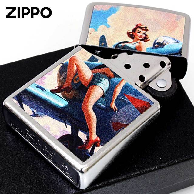 ノーズアートとピンナップガールデザインのZIPPO。ノーズアートとは、航空機の機体に描かれたさまざまな絵画、機体の愛称などを指す。性的魅力を持つモデル、ファッションモデル、俳優に対して「ピンナップガール」と言われております。ベースが、ストリートクロームなので指紋汚れも目立ちません。普段使いにオススメ!