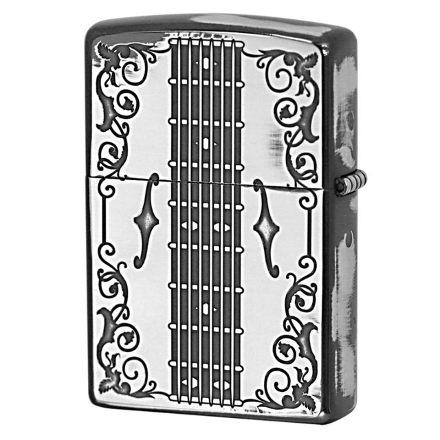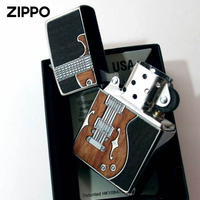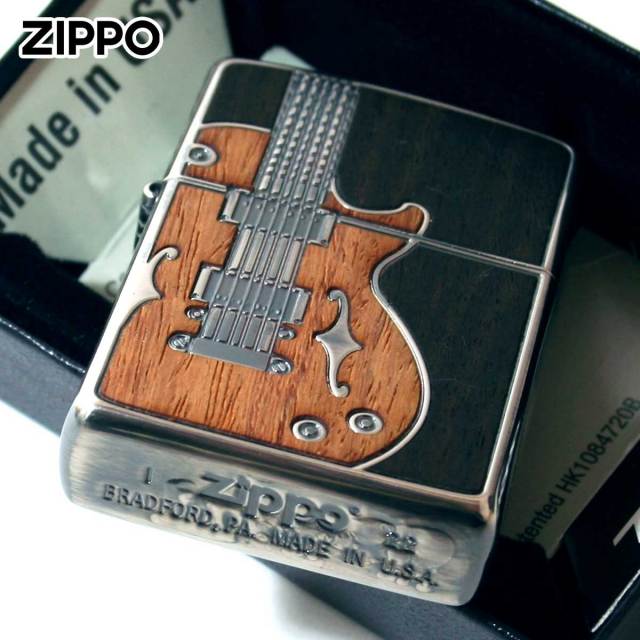 2色のウッドを用いたインレイ(象嵌)加工ZIPPO。インレイとは象嵌。象嵌とは材料を凹ませた部分に別の材料を嵌め込む技法です。まさに技巧の限りを尽くしたラグジュアリーZippoです。特に象嵌の技術は特筆もの。ウッドパネル、エッチング(腐食加工)の絶妙なコンビ仕上げ。アンティーク感を出すためにいぶし仕上げが施されています。アンティークな工芸品を思わせる逸品です。