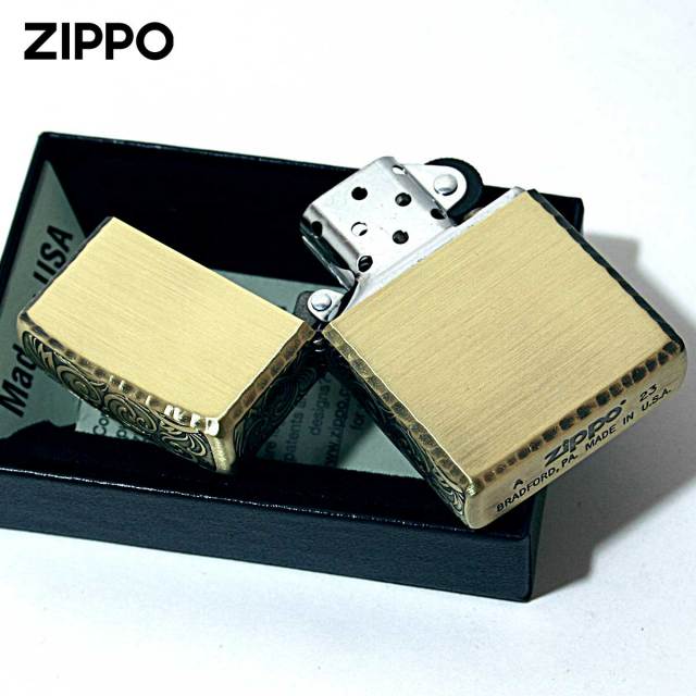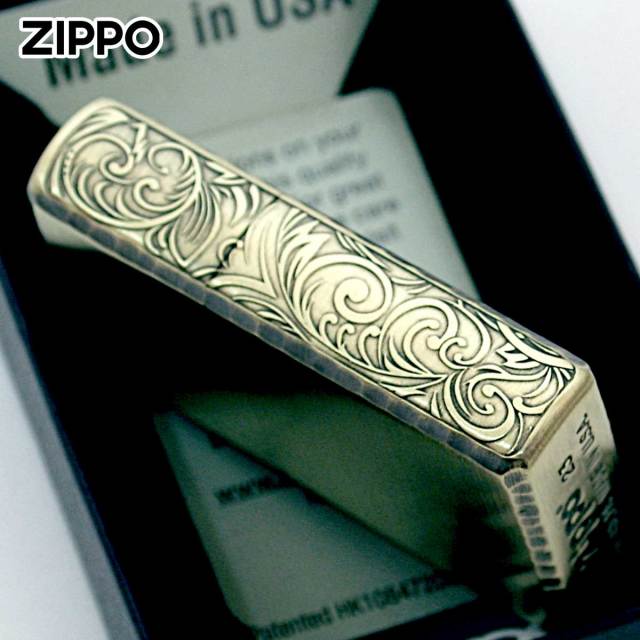3面の側面にアラベスク柄を覆い、エッジ部分にリューター加工。Zippo本体の表面には、古美仕上げを施して、まるでアンティークな骨董品のようです。シンプルに見えますが、細かいコダワリを感じるZippoです。普段遣いにオススメ!