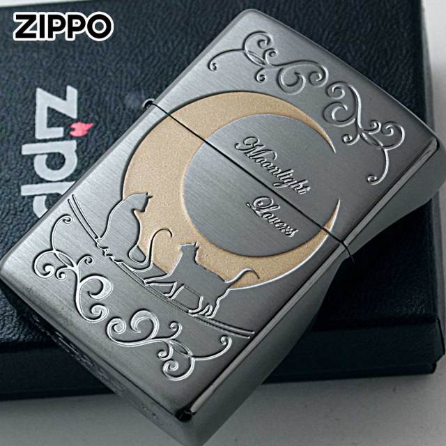 月夜を背景に二匹の猫ちゃんのシルエットが可愛いデザインです。ペアで持つものアリ!心がほっこりして癒やされるZIPPO。猫好きなあなたにお勧め!