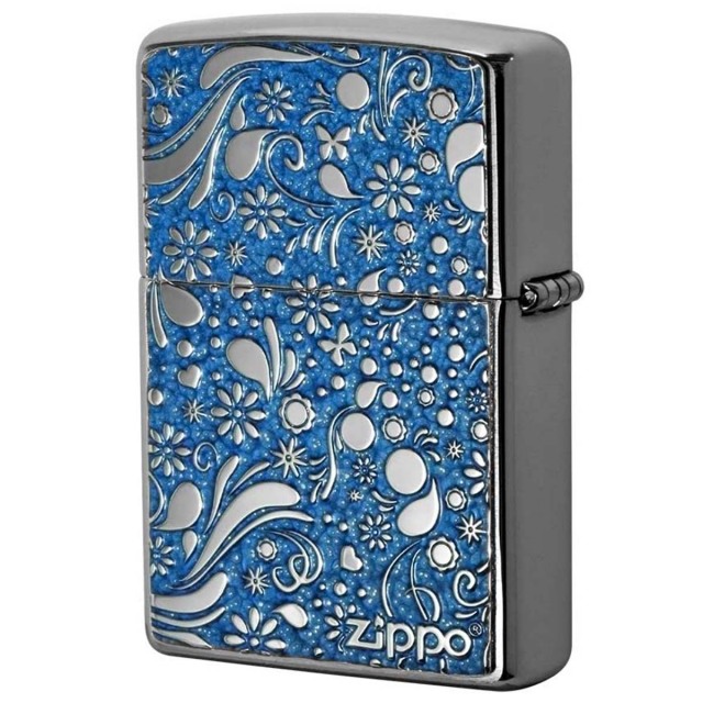 特殊な塗料を使用し焼付塗装した真鍮板に細かいエッチングでデザインを表現!!鮮やかなカラーと繊細なデザインが魅力的なZippoです。塗装独特の質感が、味を出します。両面に真鍮板プレートが貼付けられているので、手に持つ重厚感もGood♪