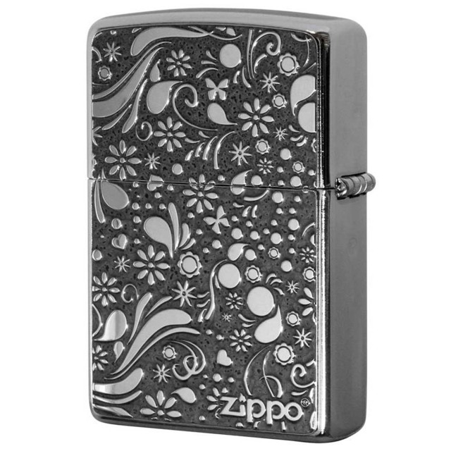 特殊な塗料を使用し焼付塗装した真鍮板に細かいエッチングでデザインを表現!!鮮やかなカラーと繊細なデザインが魅力的なZippoです。塗装独特の質感が、味を出します。両面に真鍮板プレートが貼付けられているので、手に持つ重厚感もGood♪