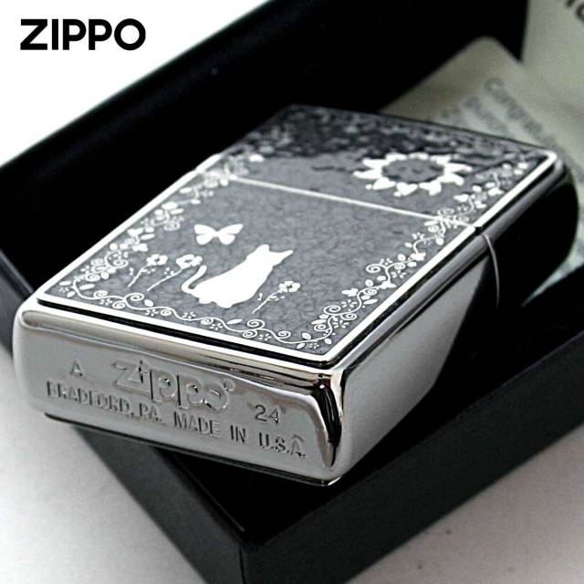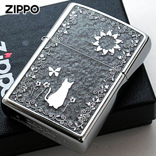 Zippo ジッポー ネコ 猫 Cat グレー #200 メタルプレート 両面加工 ニッケルメッキ 2MPP-Cat GY メール便可