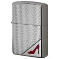 目を引く赤のハイヒール。両面にエンジンターン彫刻で網タイツを表現しております。裏面は、セクシーなヒップを彫刻で表現。思わずグッとくるデザイン。目で見て楽しめるZippoです。