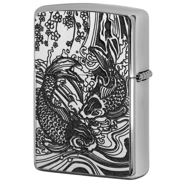 特殊な塗料を使用し焼付塗装した真鍮板に細かいエッチングでデザインを表現!!鮮やかなカラーと繊細なデザインが魅力的なZippoです。塗装独特の質感が、味を出します。両面に真鍮板プレートが貼付けられているので、手に持つ重厚感もGood♪
