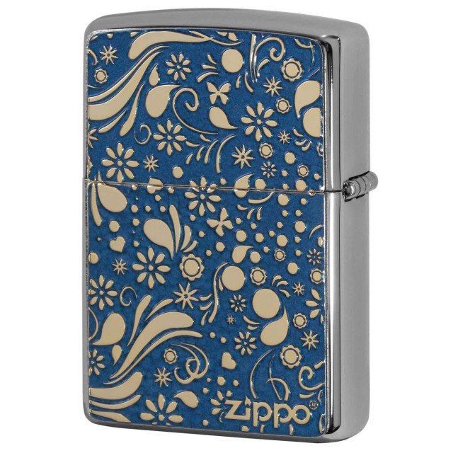 特殊な塗料を使用し焼付塗装した真鍮板に細かいエッチングでデザインを表現!!鮮やかなカラーと繊細なデザインが魅力的なZippoです。塗装独特の質感が、味を出します。両面に真鍮板プレートが貼付けられているので、手に持つ重厚感もGood♪