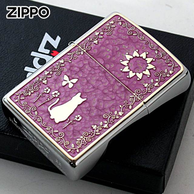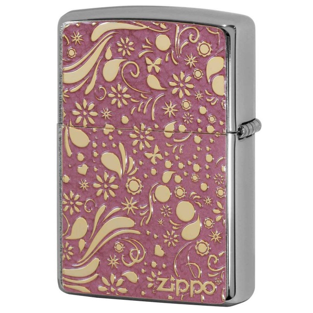 特殊な塗料を使用し焼付塗装した真鍮板に細かいエッチングでデザインを表現!!鮮やかなカラーと繊細なデザインが魅力的なZippoです。塗装独特の質感が、味を出します。両面に真鍮板プレートが貼付けられているので、手に持つ重厚感もGood♪