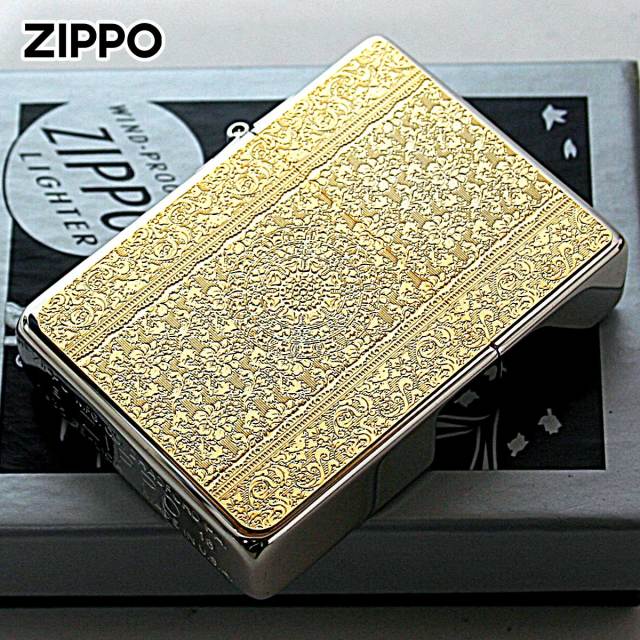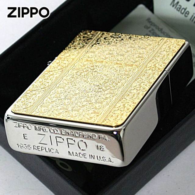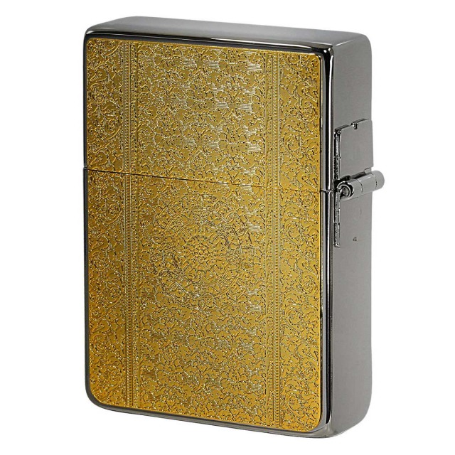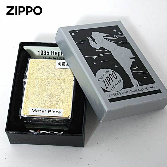 ダマスク柄のメタルプレートを1935レプリカZippoに貼り付けました。ダマスク柄とは、紋織物の一種であるダマスク織の模様をモチーフにした柄の事です。上品で優雅な雰囲気のダマスク柄は、ファッションや食器などあらゆる商品に用いられます。細かい彫刻は、芸術的で目を奪われます。女性にオススメ!