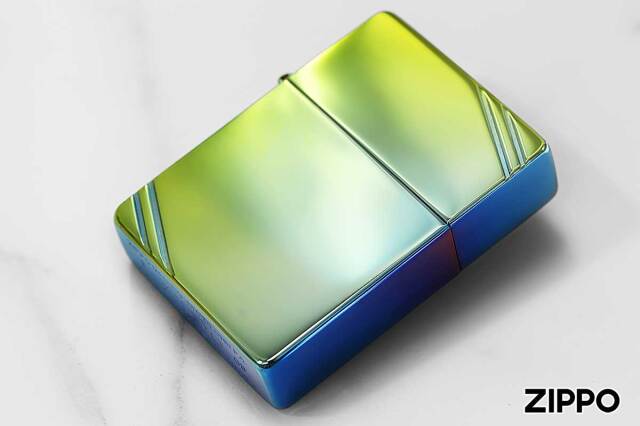 1935年当時の形状を再現した1935レプリカモデルのZippoです。3バレル外ヒンジ、フリントホイール部の中空リベット。耐風ライターとして認知され始めていた1935年当時の面影そのままに。耐摩耗性、耐腐食性に優れたチタンコーティングが施されております。普段使いにおすすめです。レインボー柄は、Zippo毎に色が異なりますので、予めご了承下さい。