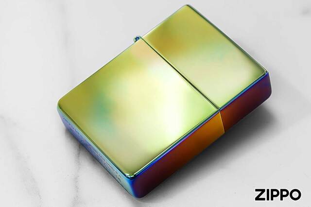 1935年当時の形状を再現した1935レプリカモデルのZippoです。3バレル外ヒンジ、フリントホイール部の中空リベット。耐風ライターとして認知され始めていた1935年当時の面影そのままに。耐摩耗性、耐腐食性に優れたチタンコーティングが施されております。普段使いにおすすめです。レインボー柄は、Zippo毎に色が異なりますので、予めご了承下さい。