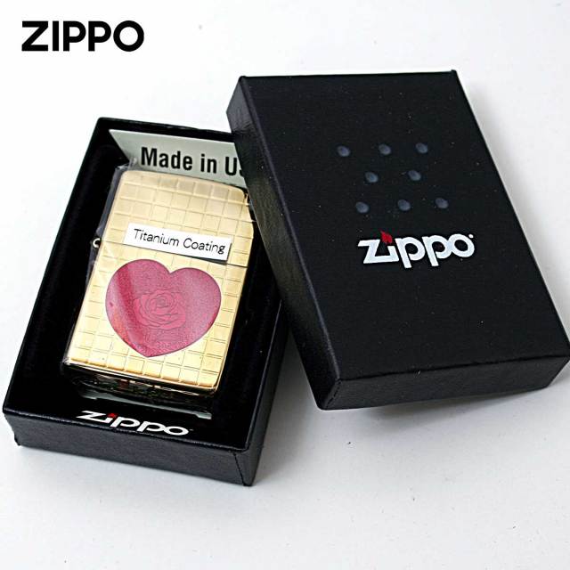 よく見ると・・・ハートマークの内側に薔薇が。愛と情熱のZIPPOです。傷に強く、美しいチタンコーティング。普段遣いにも。母の日や、大切な女性にプレゼントとしてGood!!