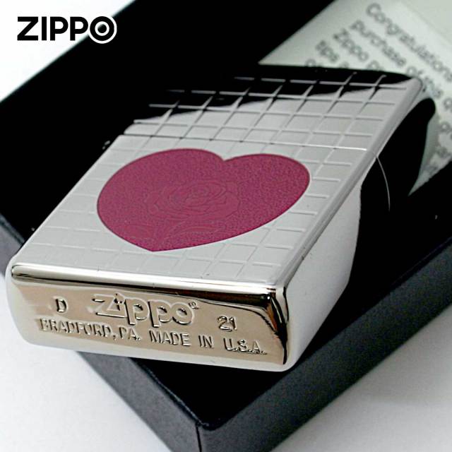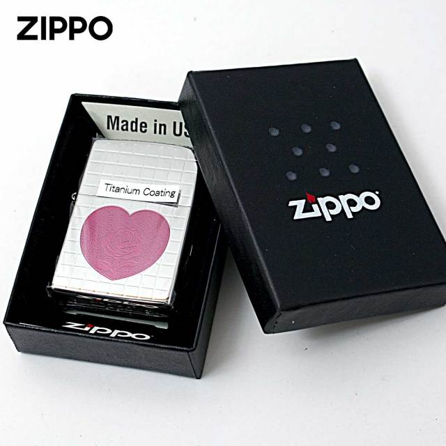 よく見ると・・・ハートマークの内側に薔薇が。愛と情熱のZIPPOです。傷に強く、美しいチタンコーティング。普段遣いにも。母の日や、大切な女性にプレゼントとしてGood!!
