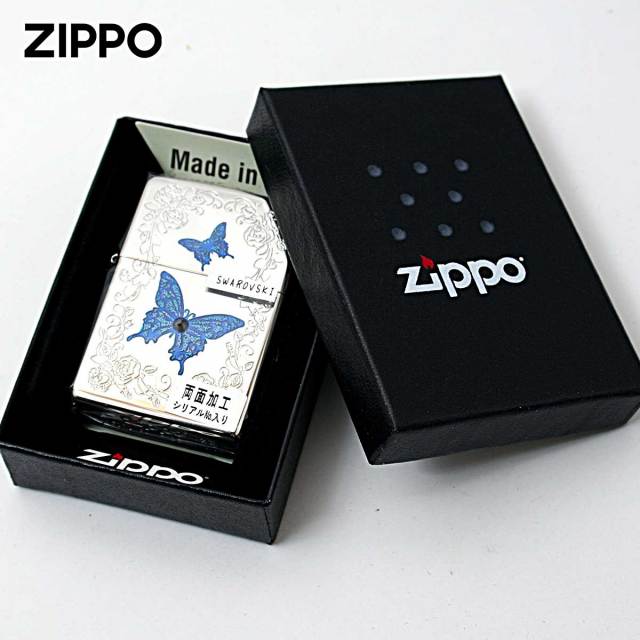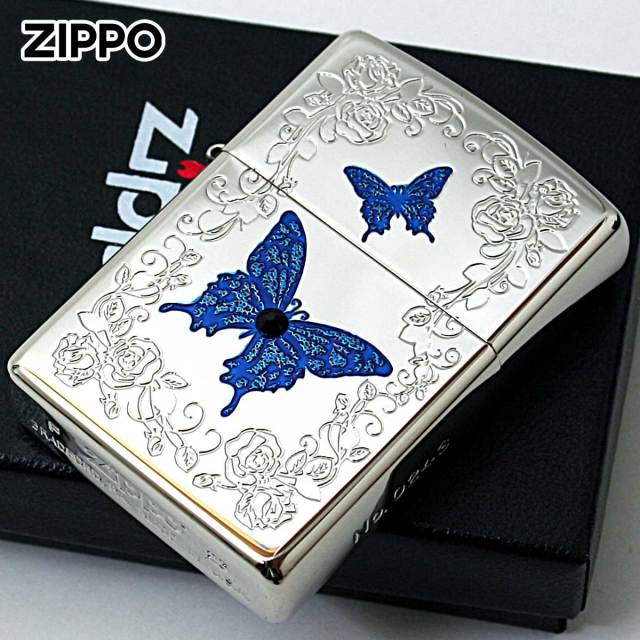 「青い蝶々」には、幸運の訪れや運気上昇などの意味があるそうです。また、青い色は気持ちを落ち着かせてくれる効果もあります。唐草模様が蝶々を囲み、まるで花園を羽ばたいているかのようです。女性に使ってほしいZIPPOです。