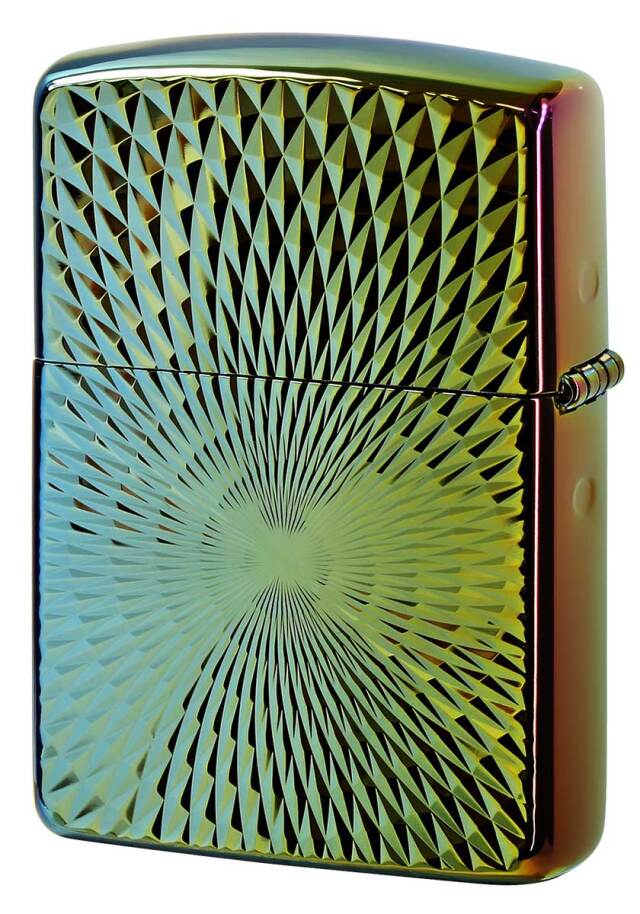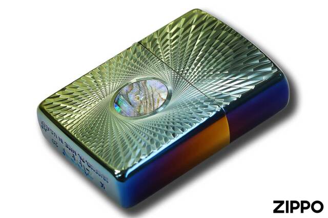 通常の1.5倍の厚みを持つアーマーケースをベースにダイヤモンドカットの両面加工。目を覆うほどの輝き、病みつきになりそうな重厚感。どこに持って言っても恥ずかしくない高級ライターの雰囲気を醸し出しています。レインボーの色味とシェルの柄には個体差がございます。予めご了承下さい。