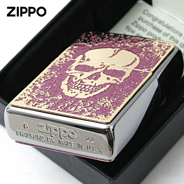 特殊な塗料を使用し焼付塗装した真鍮板に細かいエッチングでデザインを表現!!鮮やかなカラーと繊細なデザインが魅力的なZippoです。塗装独特の質感が、味を出します。両面に真鍮板プレートが貼付けられているので、手に持つ重厚感もGood♪