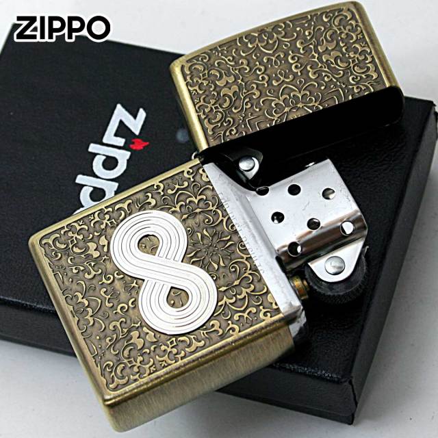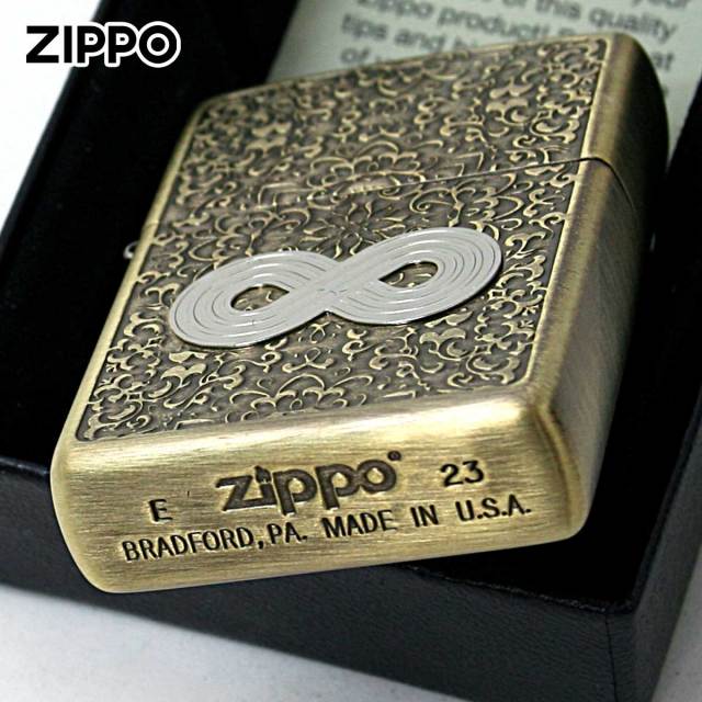 インフィニティ=無限大。唐草模様を背景に、無限大のプレートを貼り付けたZIPPO。この無限大のマークは、色々な象徴としても意味があります。永続性や繋がり、愛や幸福と言ったスピリチュアル的な意味合いもあるようです。お守り代わりに使うのもGood!!