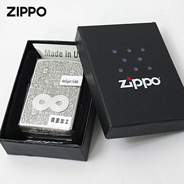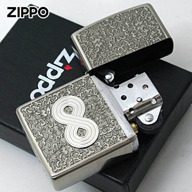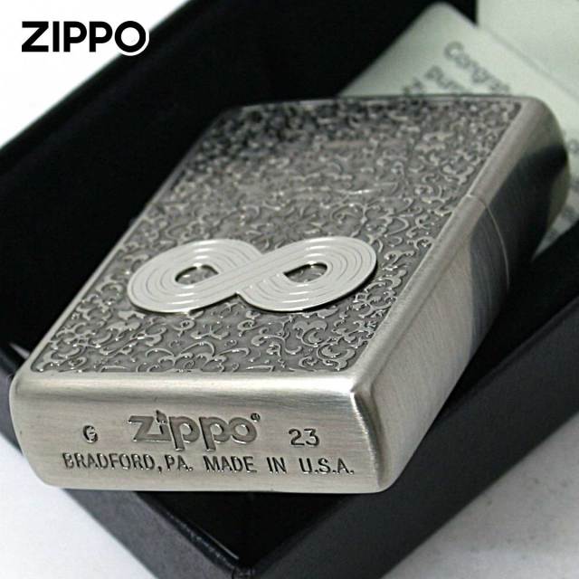 インフィニティ=無限大。唐草模様を背景に、無限大のプレートを貼り付けたZIPPO。この無限大のマークは、色々な象徴としても意味があります。永続性や繋がり、愛や幸福と言ったスピリチュアル的な意味合いもあるようです。お守り代わりに使うのもGood!!