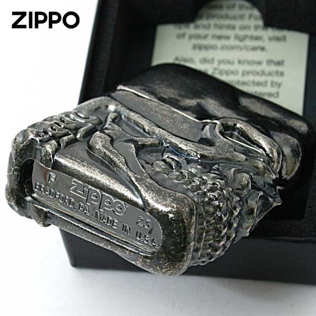 超弩級の絶大なインパクトを誇るZIPPOライター、その名もSPECIALSKULL JACKET!ずしりとした重みのあるケース本体は、スカルモチーフのジャケットでフルカバーされており、圧倒的なまでに迫力のあるドクロの横顔が、細部に渡り緻密に彫り込まれ描かれています。一旦は生産終了になりましたが、待望の復活!圧倒的な重厚感と迫力のフルメタル、まさにスペシャルな一品!
