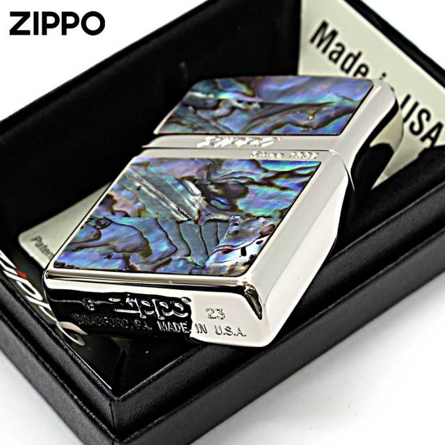 表面は、天然貝をZIPPOへ貼付けし装飾。天然貝は、天然素材のため同じ模様が1つとして存在しません。裏面は、エッチングで縦縞を彫刻して色入れ。シンプルながらも存在感を放ちます。男女問わずご使用頂けるデザイン!お揃いで持つのもGood!シェルの模様は、ZIPPO毎に模様が異なりますので、予めご了承下さい。