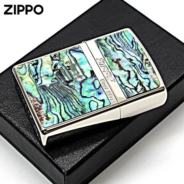 表面は、天然貝をZIPPOへ貼付けし装飾。天然貝は、天然素材のため同じ模様が1つとして存在しません。裏面は、エッチングで縦縞を彫刻して色入れ。シンプルながらも存在感を放ちます。男女問わずご使用頂けるデザイン!お揃いで持つのもGood!シェルの模様は、ZIPPO毎に模様が異なりますので、予めご了承下さい。