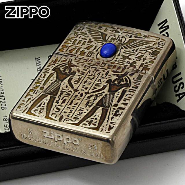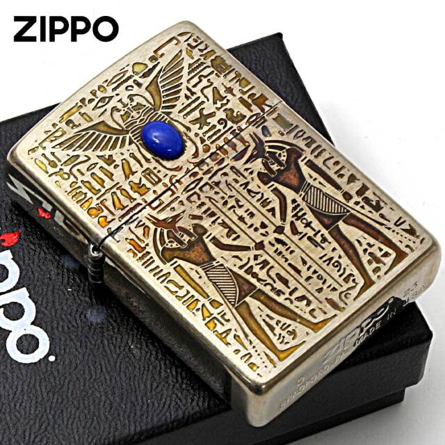古代エジプト神話をモチーフにしたZIPPO。アヌビスは、古代エジプト神話に登場する死者の守護神です。天然石のラピスラズリは、災いや悪運を退け最高の幸運をもたらしてくれると言われます。天然石や色合いやユーズド感は、ZIPPO毎に個体差がございますので、予めご了承下さい。