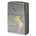 1937年に初めて全米に打ち出したZippoの広告に描かれた「風の中でタバコに火をつける女性」が、Windy(ウインディ)です。それ以降ZIPPO社は、この美しい女性のイラストが入った広告をたびたび有名雑誌に載せるようになりました。まさに、「風の中でタバコに火をつける女性」のデザインです。ウインディ部分は、メタル貼りとなっております。