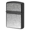 レギュラーケースの1.5倍の厚さアーマーケースがベース。表面は、アラベスク柄のメタルプレートが貼り付けられております。裏面には、エッチングでストライプを彫刻。シンプルで落ち着いた面持ちのZIPPOです。女性が持つと美しいデザイン!