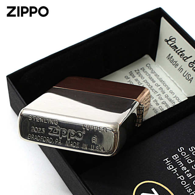 スターリングシルバーとカッパーが融合した新世代ZIPPO。独特の質感で人気の高いスターリングシルバーと、2022年に復刻し好評を得たソリッドカッパーのリッドとボトムで異なる素材で構成されたハイブリッドモデルです。勿論、限定のボトムスタンプ。限定生産の為、売り切り完売です。お早めに!