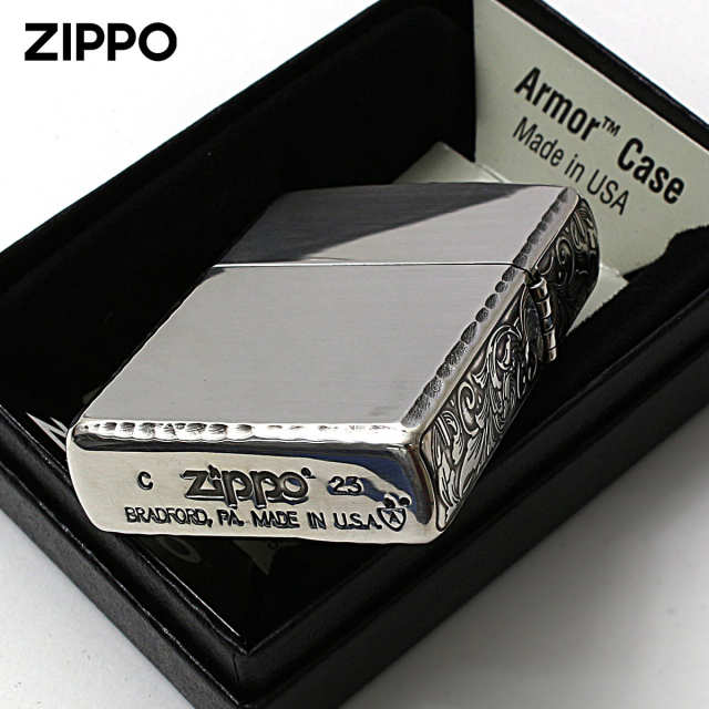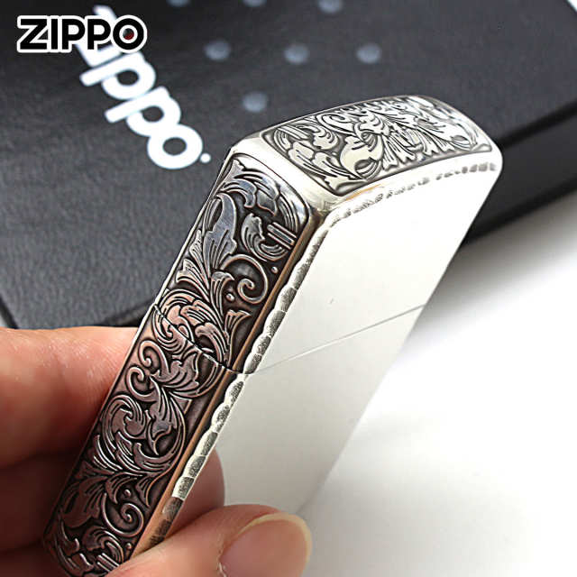 レギュラーケースの1.5倍の厚さアーマーケース、エッジ部分にはリューター加工を施して、さらに側面にアラベスク柄を彫刻。大人の雰囲気が漂うビターなモデル。男女問わず使用頂けるユニセックスなZIPPO!