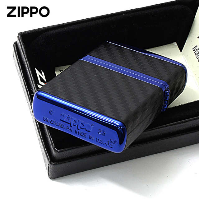 「軽くて強い」カーボンファイバーを貼り付けたZippoです。ケースは、レギュラーケースの1.5倍の厚さアーマーケース。シックで落ち着いた雰囲気。綿密に織り込まれたカーボンファイバーは、光の反射で見え方が変化する、見ても楽しめるZippo。大人の男性におススメです。