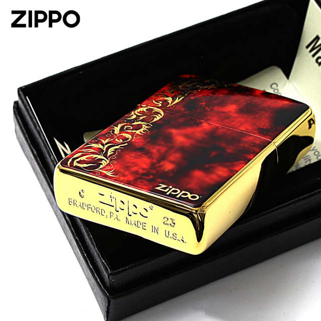 大理石調のマーブル柄に吸い込まれそうで、つい見入ってしまうZIPPO。水面に絵の具を流し込んで出来たような流線形の模様で、独特の存在感で高級感を演出します。ファッションアイテムの柄でも良く使われ、オシャレ系な要素も持ち合わせます。ケースの金メッキが引き立つアラベスク模様。フォーマルなシーンで活躍しようなZIPPO!