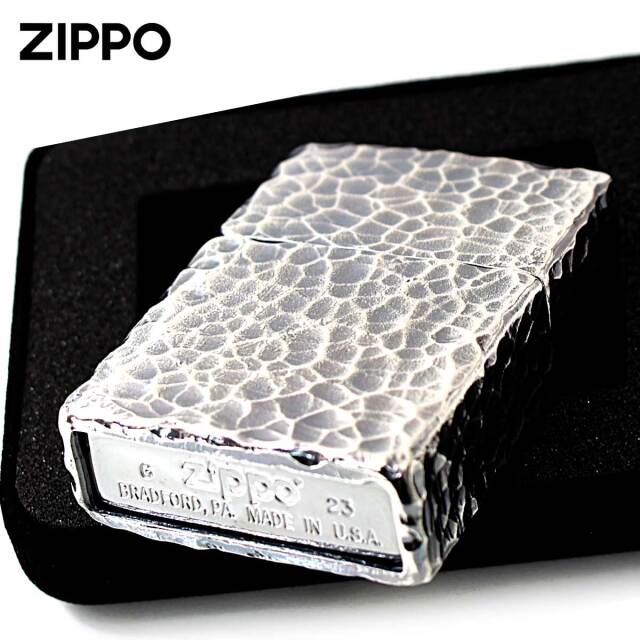 全面ハンマートーンのフルメタルジャケット。重厚感に満ちたフルメタルケース、手に馴染む槌目模様、優しい手触、高級感。魅せて良し、触って(使って)良し。退屈な日常に優雅なアクセントを与えてくれる極上のジッポーです。