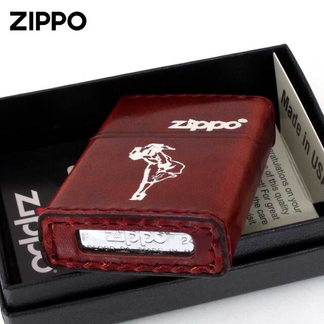 革巻きにウインディを箔押ししたZIPPOです。1937年に初めて全米に打ち出したZippoの広告に描かれた「風の中でタバコに火をつける女性」が、Windy(ウインディ)です。それ以降ZIPPO社は、この美しい女性のイラストが入った広告をたびたび有名雑誌に載せるようになりました。革製品は、使えば使うほど味わいが増します。シワやムラがありますが、革製品ゆえの風合いです。ZIPPO毎に個体差がございますので、予めご了承下さい。