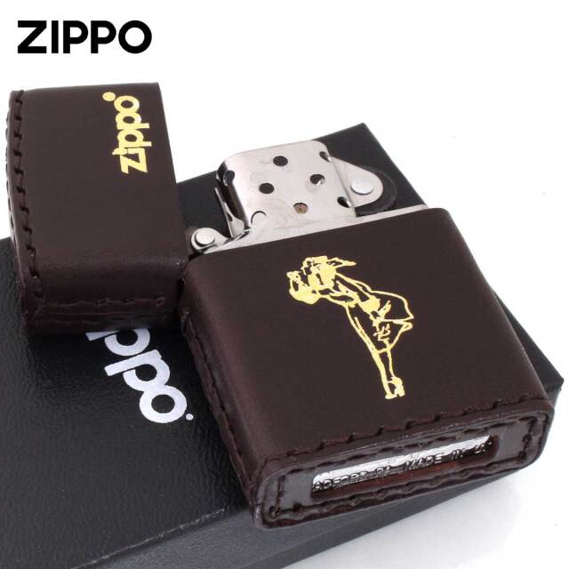革巻きにウインディを箔押ししたZIPPOです。1937年に初めて全米に打ち出したZippoの広告に描かれた「風の中でタバコに火をつける女性」が、Windy(ウインディ)です。それ以降ZIPPO社は、この美しい女性のイラストが入った広告をたびたび有名雑誌に載せるようになりました。革製品は、使えば使うほど味わいが増します。シワやムラがありますが、革製品ゆえの風合いです。ZIPPO毎に個体差がございますので、予めご了承下さい。