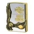 アメリカン・モーターサイクルの代名詞Harley-Davidson(ハーレー・ダビッドソン)のZippoです。大きく羽を広げた鷲のメタルが大迫力のZippoです。ディティールに徹底的にこだわった躍動感溢れるメタル、金銀コンビメッキを施されたロゴ、ハーレー乗りにも十分満足していただける逸品です。特約店販売制、日本国内限定販売品です。Harley専用の化粧箱が付属します。