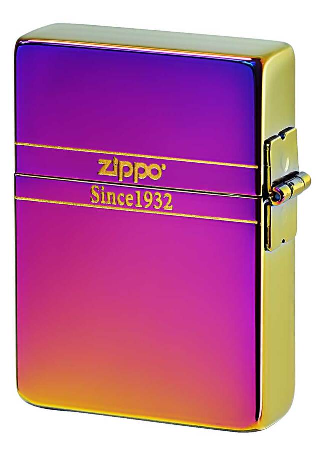 1935年当時の形状を再現した1935レプリカモデルのZippoです。3バレル外ヒンジ、フリントホイール部の中空リベット。耐風ライターとして認知され始めていた1935年当時の面影そのままに。コーティングは、耐摩耗性、耐腐食性に優れたコーティング。メッキの密着度も高く、剥がれにくいコーティングなので、普段使いにもおすすめ。レインボー柄は、Zippo毎に色が異なりますので、予めご了承下さい。