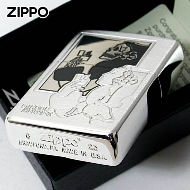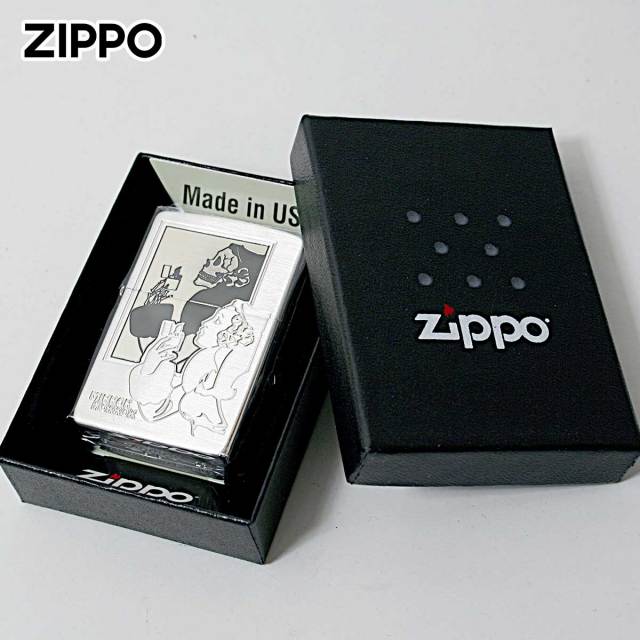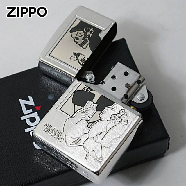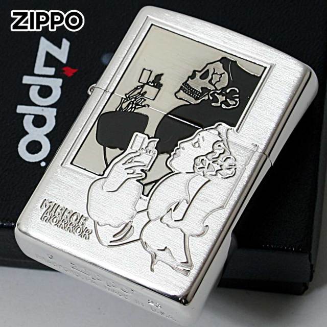 古くから多くファンに愛され続ける定番の「Windy」のZIPPO。1937年に初めて全米に打ち出したZippoの広告に描かれた「風の中でタバコに火をつける女性」Windy(ウインディ)の愛称で親しまれ現在でも人気です。鏡に映ったウインディが。。。ポリッシュとサテンの組み合わせで、奥行きあるデザインに仕上がりました。オカルトホラーのユニークなZIPPOです!