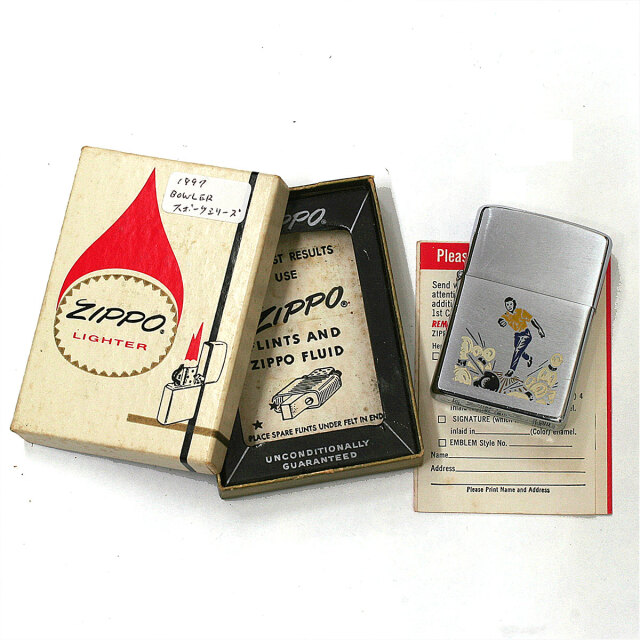 スポーツ柄シリーズの「ボーリング」デザイン。No.200をベースにプリント加工。今では、大変希少な逸品です。