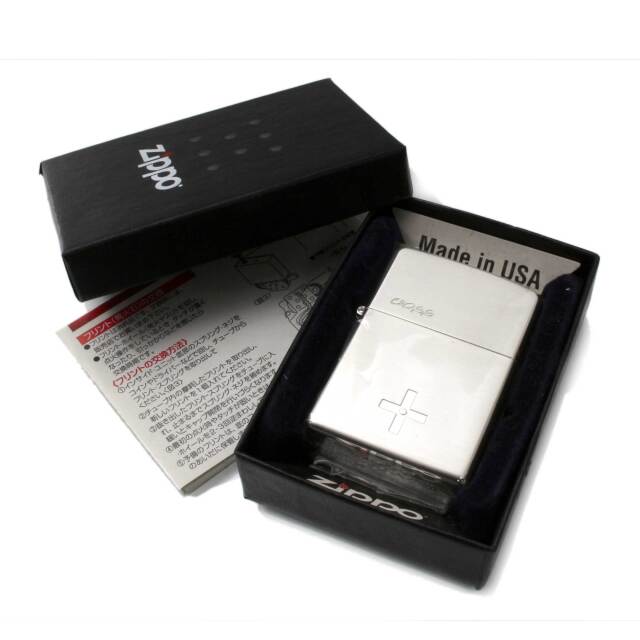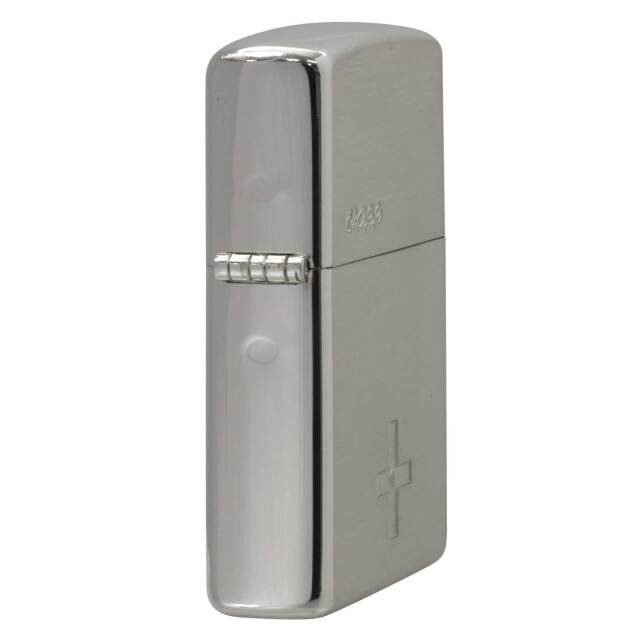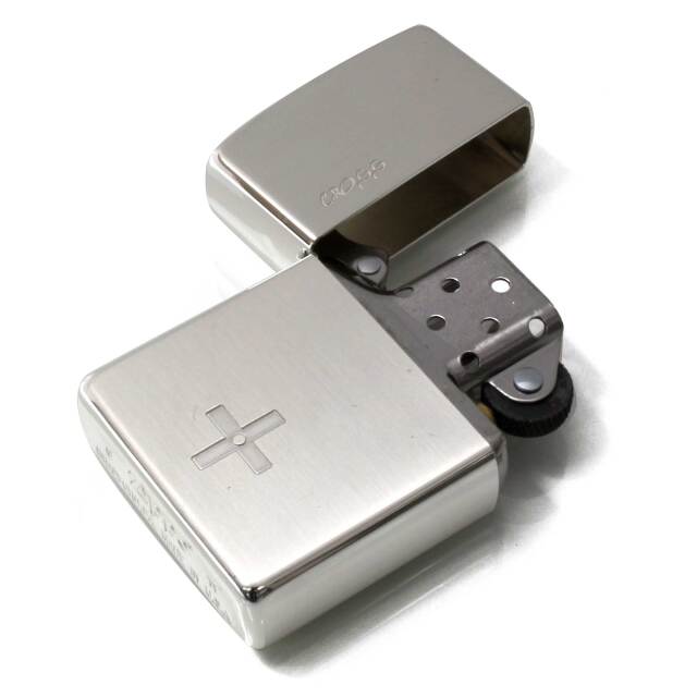 CROSS柄デザインのZIPPO。蓋部分に「CROSS」の文字、ボトム部分に十字架のデザインが施されています。シンプルデザインなので普段使いにも活躍します。サテンクローム、エッチング。