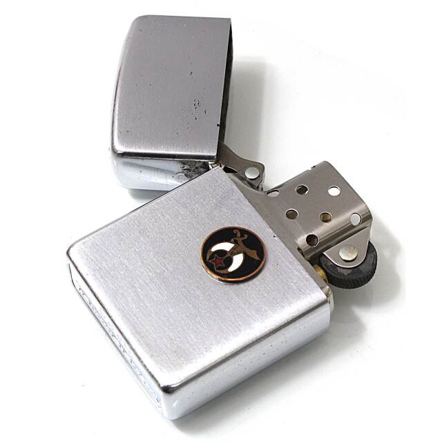 フリーメイソンシュライナーのロゴZIPPO。フリーメイソンシュライナーは、主に病院や孤児院、学校などの設立や寄付等の慈善活動を行う団体です。カーネルサンダースが所属していたことでも知られています。ブラッシュドクローム、メタル貼り。※インサイドユニットは2001年製。