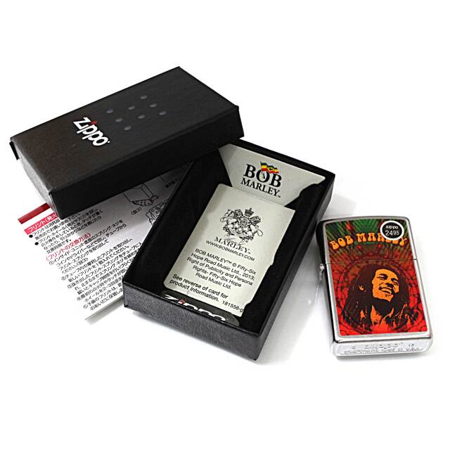 アーティストのBOB MARLEYデザインZIPPO。ポップでカラフルに描かれています。BOB MARLEY好きさん必見です。ストリートクローム、プリント。