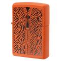 トラ柄でZipperのデザインZIPPOです。鮮やかなオレンジにトラ柄が映えるデザインです。普段使いにもおすすめです。マットオレンジ、プリント。